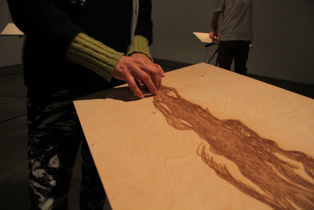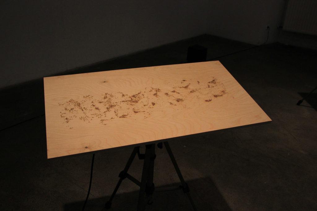 This performance shows us how much our body is the central actor empowering those ‘moments of transition’ which transform artistic intention into sonic outcome. Our bodies, embedded in a perpetual action and perception loop, explore physical materiality and inform us about the world. But our bodies are noisy. They do not only enable performance but they also sculpt our ´being-in-the-world´. In ‘A Moment of Transition’ interface´s materiality becomes physical notation provoking performace. Tomás´ noisy hands, freely exploring the affordances of this system, finally produce the sound work we perceive.