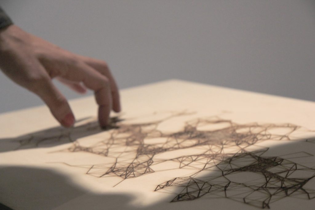 But, in which ways is it possible to embody musical works into musical instruments? ‘A Moment of Transition’ is a live electronics work performed with a “tangible score” whose form has been inspired by certain sound gestures. Through the ‘action of the hand’ Tomás’ explores the tactile patterns engraved on the instrument. A machine learning system clusters and recognizes tactile and sonic contents enabling real-time manipulation of digital information previously stored and analyzed in the computer. A generative lighting system augments the paper’s physical materiality while it also inscribes a visual narrative inspiring musical forms. The result of this physical encounter is a live performance where sound, light and interface become both musical notation and instrument.
